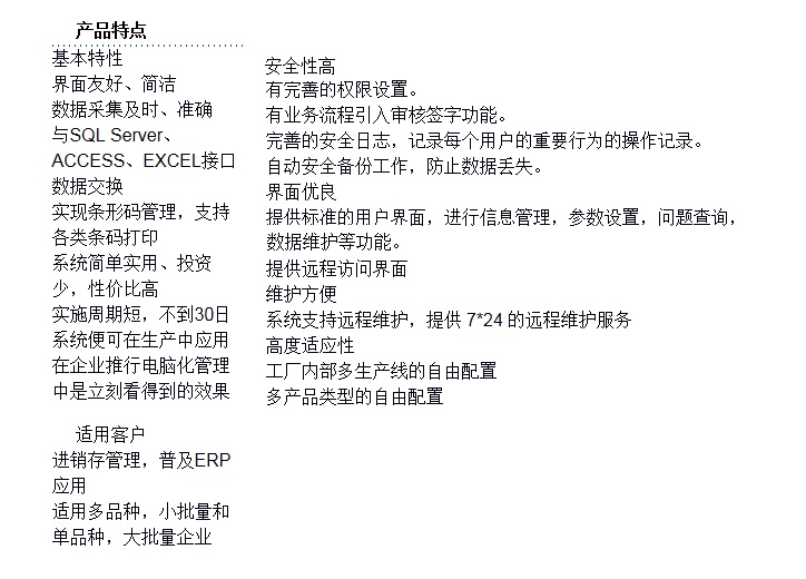力。通過現場生產可進行條碼管理,實時獲得生產進度,保證按計劃生產。